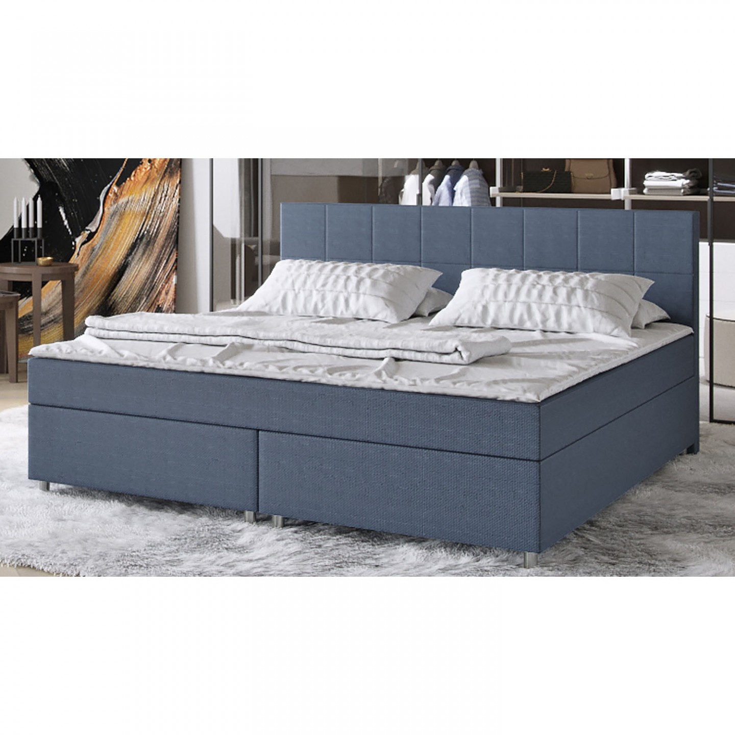 Boxspring sunt paturi americane înalte, care vor aduce confortul și luxul dormitorului și vor oferi corpului dvs un mediu ideal pentru odihnă de calitate. Patul de lux este format din două paturi fixe, două saltele cu arcuri Bonell și un topper. Principalul avantaj al acestui pat este independența unei persoane de a dormi fata pe cealaltă, în cazul mișcării unei persoane pe un pat nu există nici o mișcare nedorită celălalt pat. Ambele paturi sunt conectate numai de topper și, prin urmare, nu există nici o influență reciprocă a locurilor de dormit.
