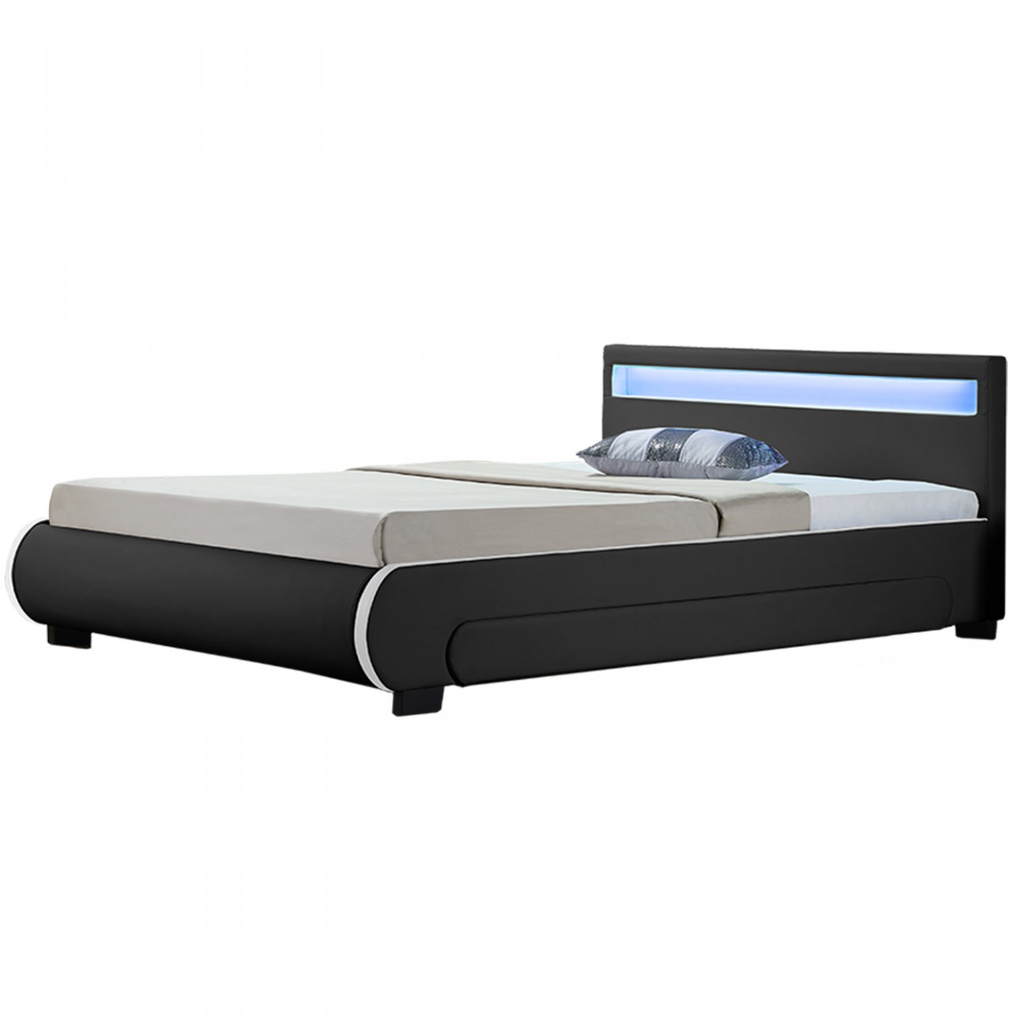Pat tapițat Bilbao cu spațiu de depozitare si iluminare LED 140 x 200 cm | negru
