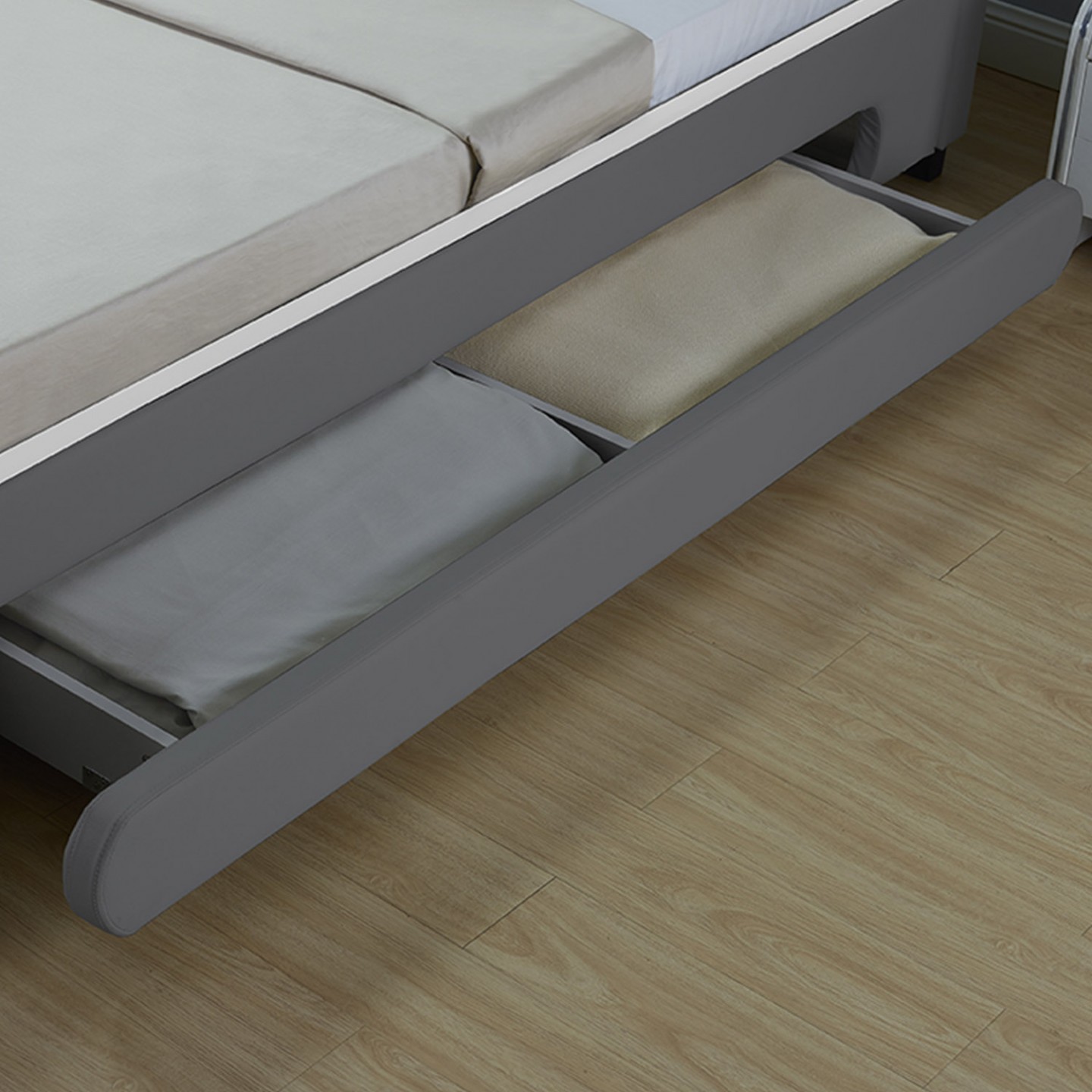 Patul este livrat împreuna cu spațiul de depozitare care oferă suficient spațiu pentru așternuturi și alte lucruri.