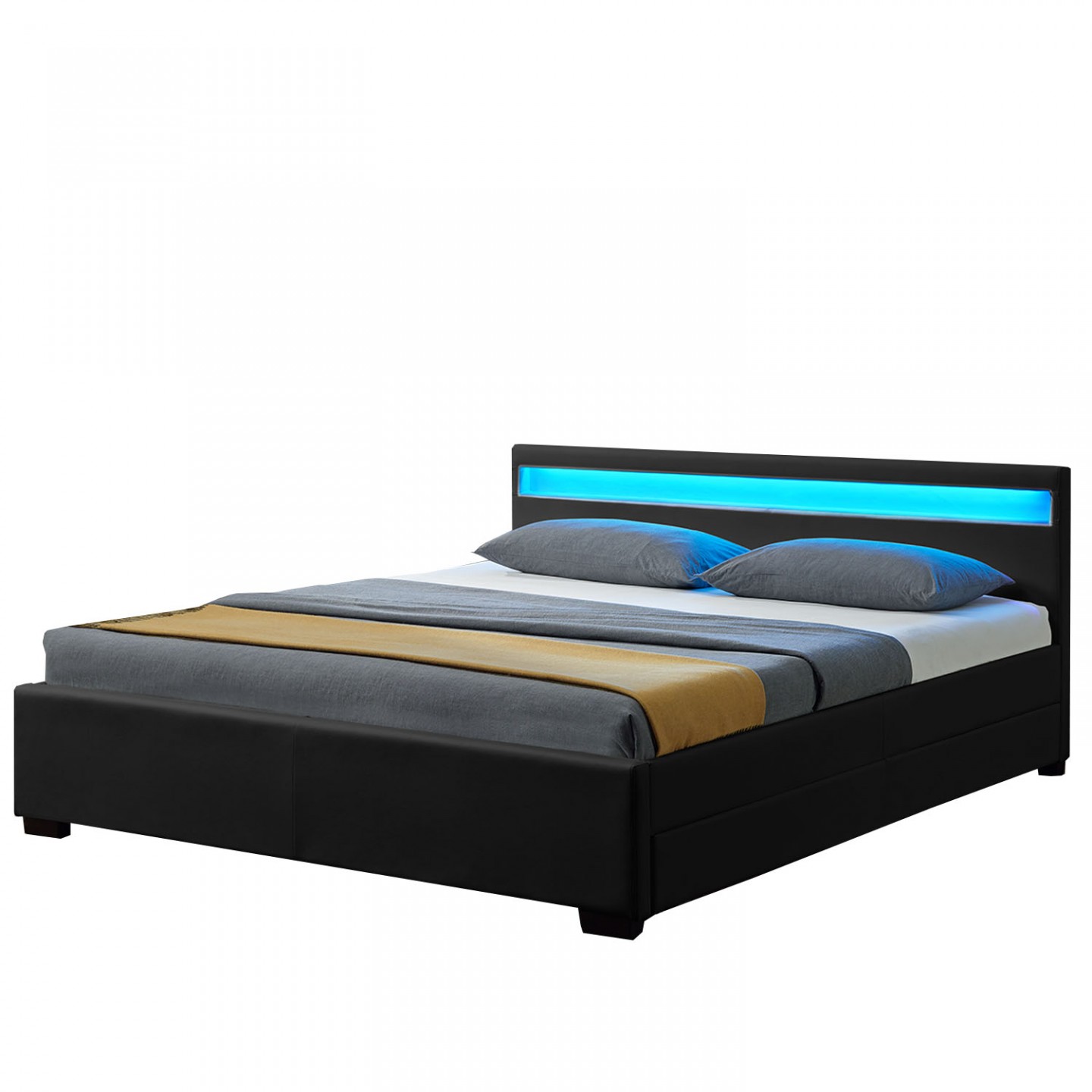 Pat tapițat Lyon cu spațiu de depozitare si iluminare LED 140 x 200 cm | negru