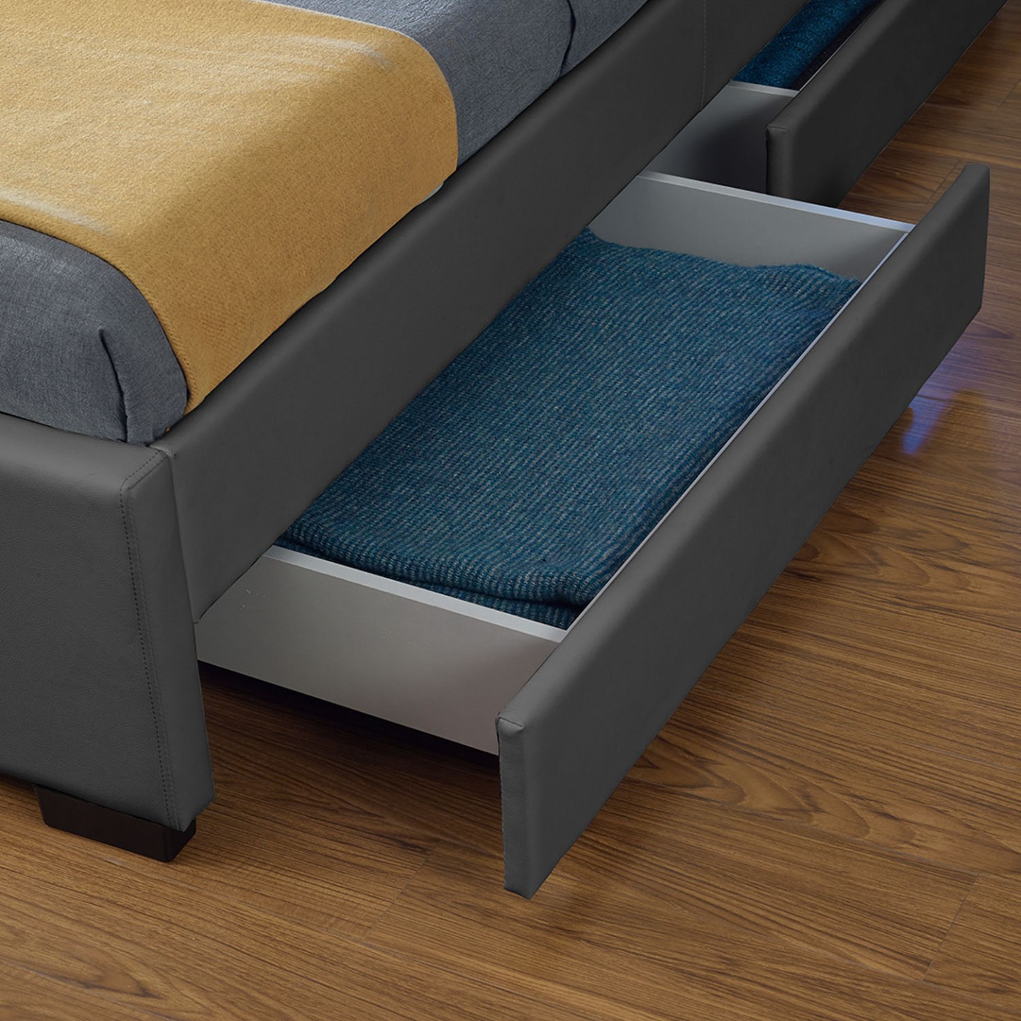 Pat tapițat Lyon cu spațiu de depozitare si iluminare LED 180 x 200 cm | gri