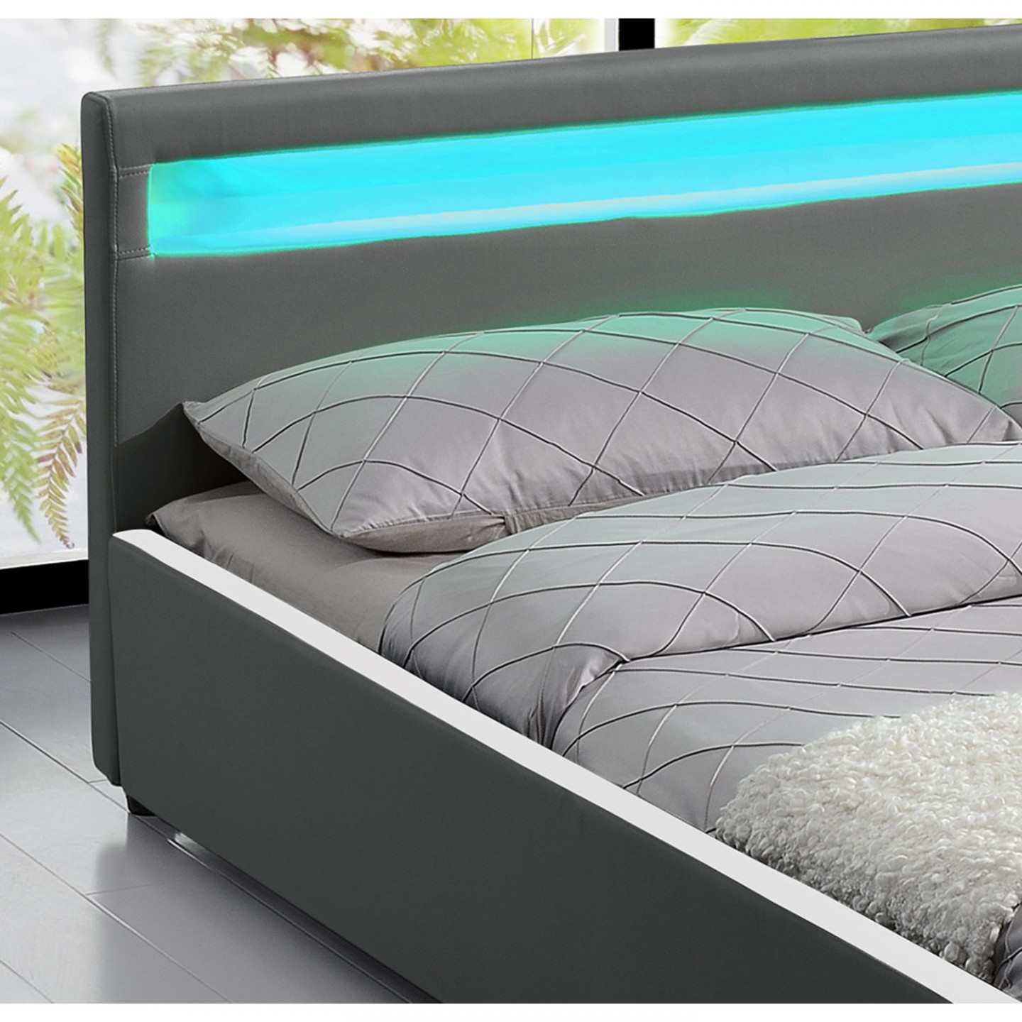 Pat tapițat Sevilla cu iluminare LED 180 x 200 cm | gri închis