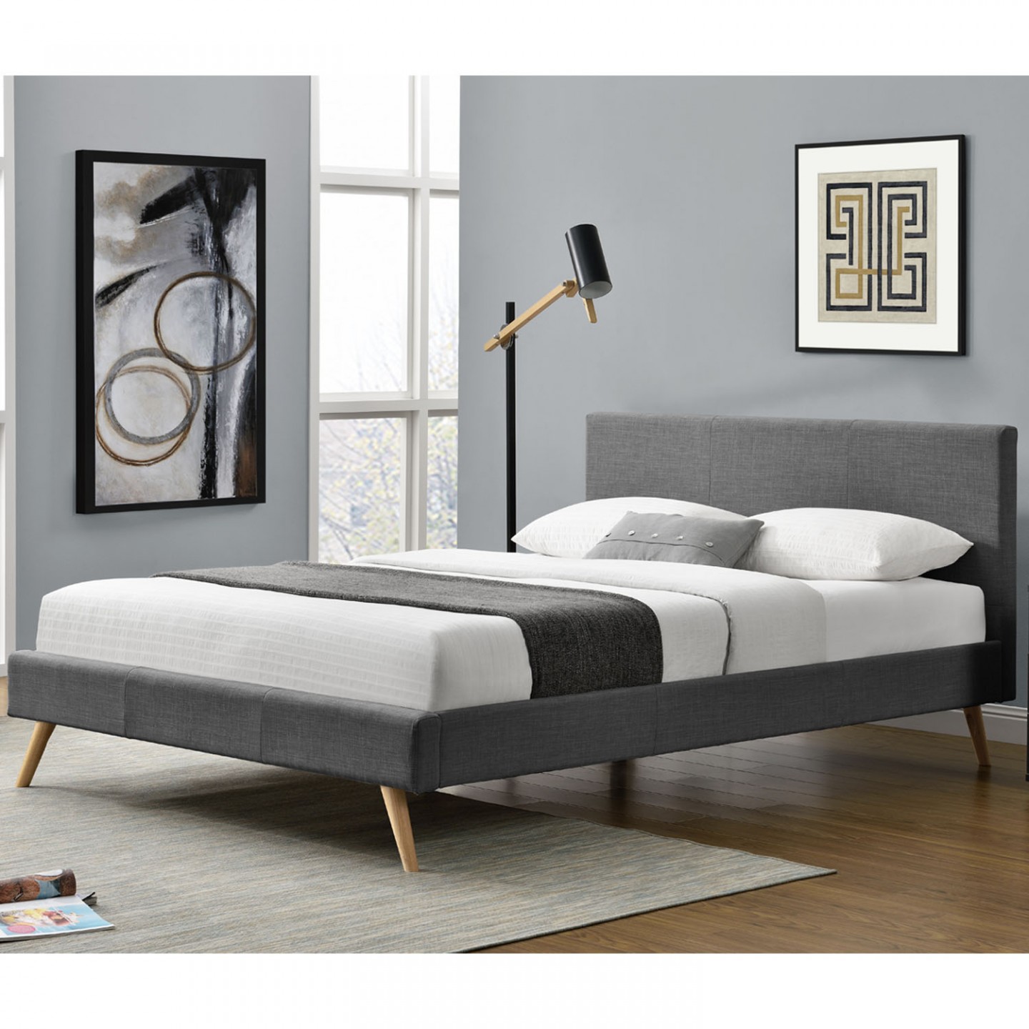 Pat tapițat Toledo 140 x 200 cm | gri închis