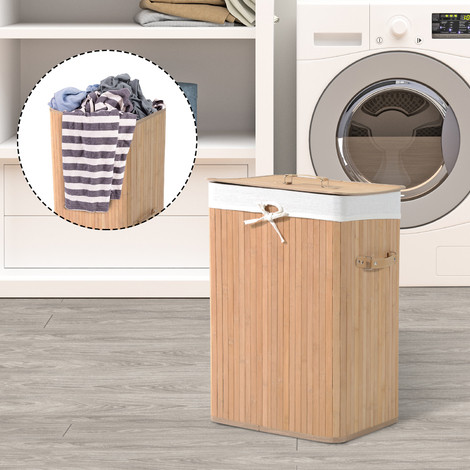 Un coș frumos și practic vă va ajuta să vă păstrați casa ordonată. Este confecționat din bambus și este potrivit nu numai pentru rufe murdare, ci și pentru jucării, încălțăminte etc. Coșul are un volum mare, dar poate fi ușor pliat și depozitat. Materialul de bambus utilizat îi conferă un aspect plăcut, natural, iar coșul cu cuplu se va evidenția frumos chiar și în hol sau în sufragerie. Spațiul interior al coșului este echipat cu o pungă din material textil detașabil, pe care o puteți extrage cu ușurință cu conținutul său și, în caz de murdărie, spălați-o cu rufele murdară.