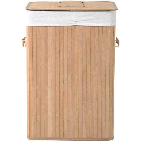 Coș din bambus pentru rufe, cu capac 72 L | deschis