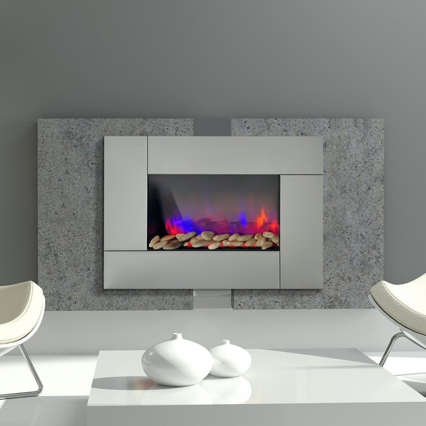 Șemineu electric de perete cu efect flăcări 900/1800W | argintiu