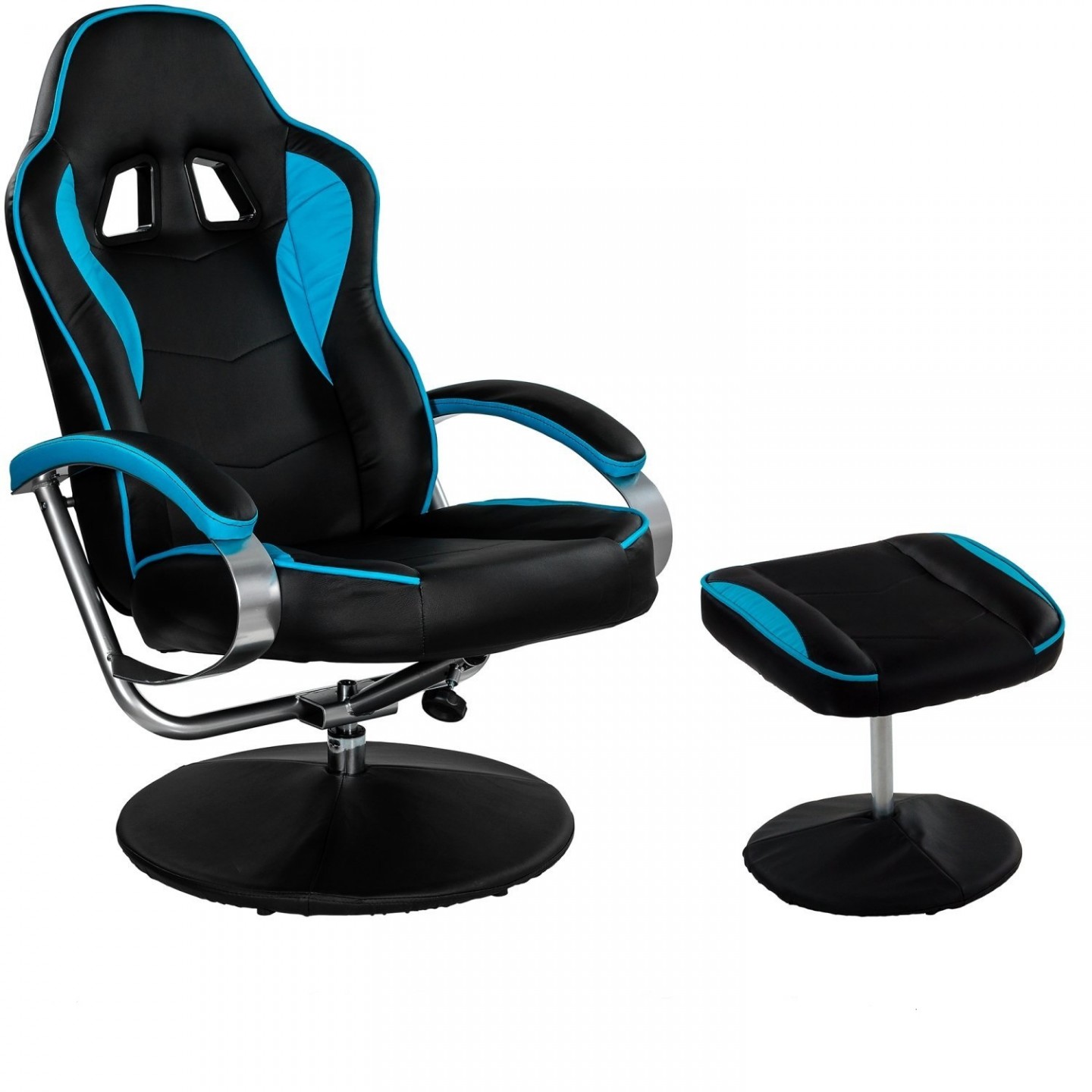Scaun de birou rotativ GT Relax Racer cu suport pentru picioare, negru/albastru deschis
