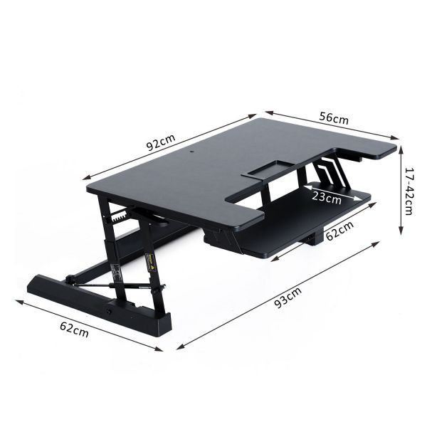 Suportul inovativ pentru reglarea înălțimii, potrivit pentru orice masă de lucru, permite nu numai să stea, ci și să stea în picioare. O soluție originală pentru oricine suferă de dureri de spate atunci când lucrează cu un computer pentru o lungă perioadă de timp.