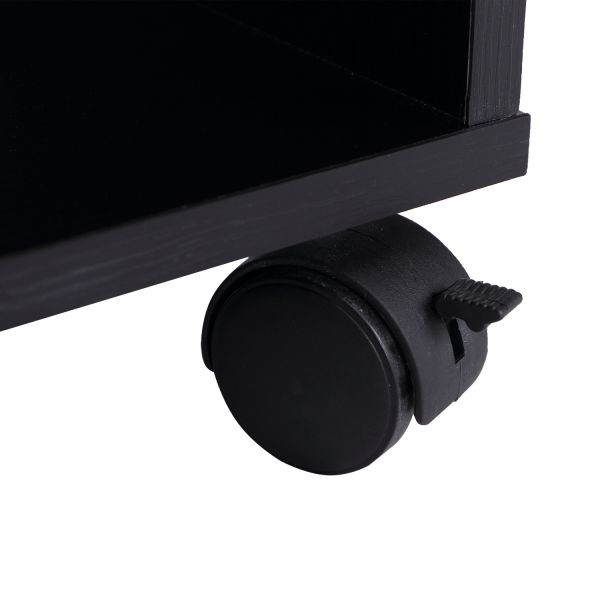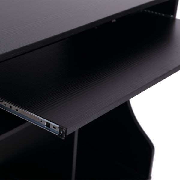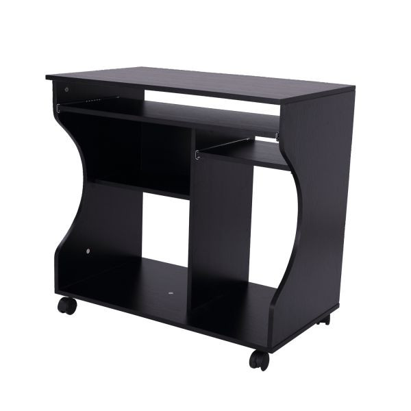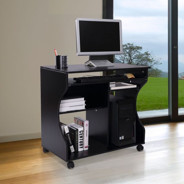 Masa PC cu roti in culoarea neagra. Însoțitorul ideal pentru munca. Cu o mulțime de spații de depozitare și un design atemporal.