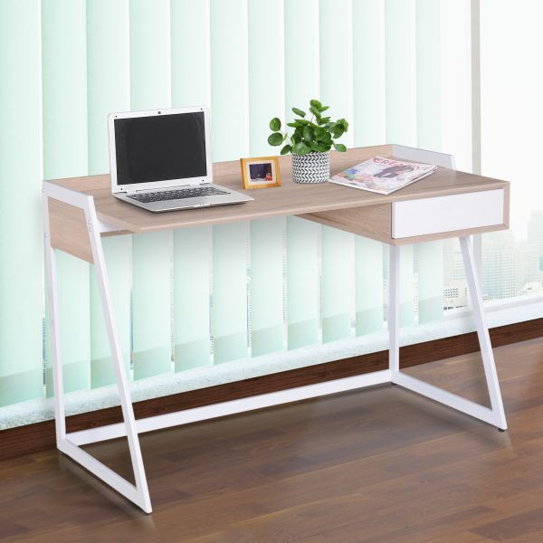 Masa PC 120 x 60 x 80 cm | alb + stejar