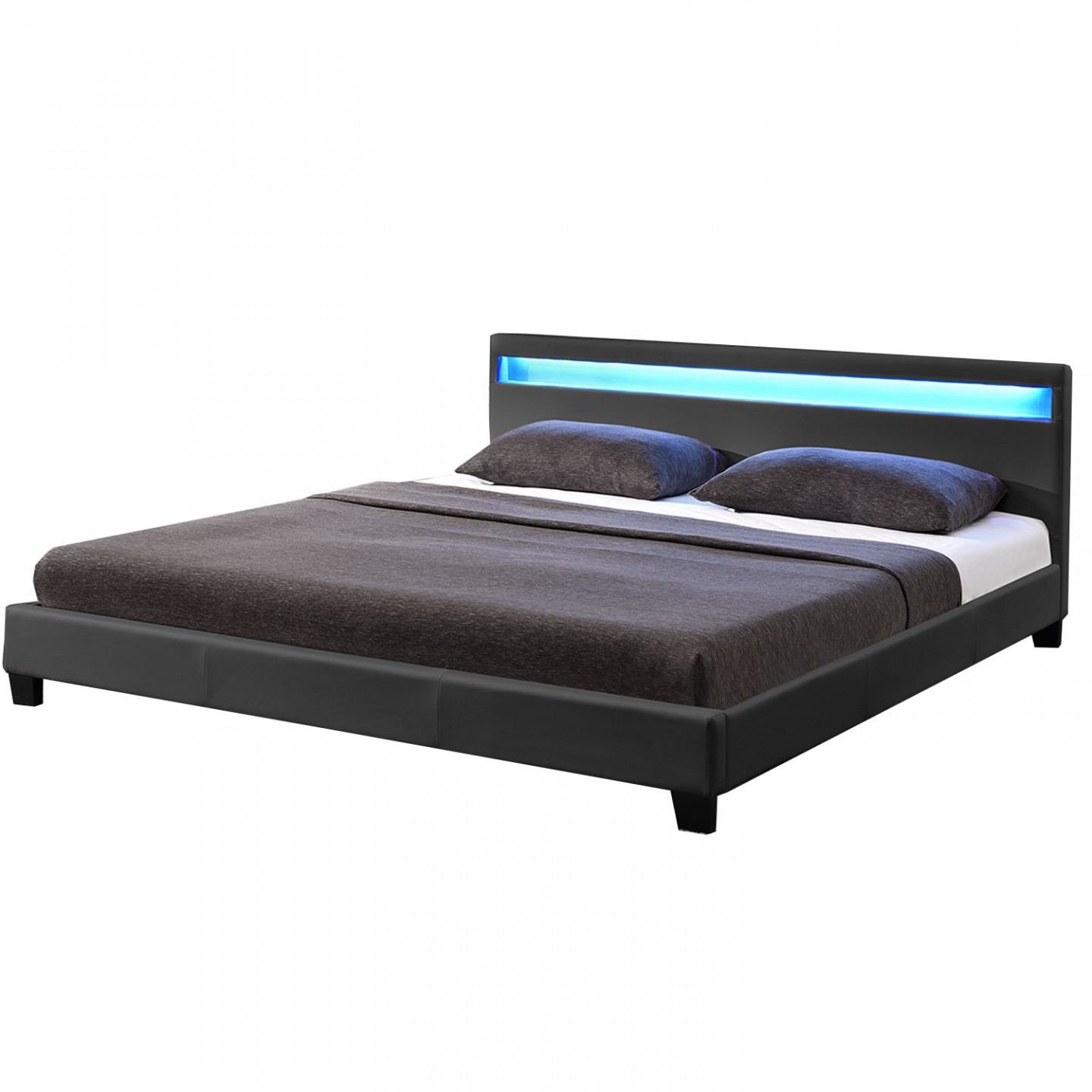 Pat tapițat Paris cu iluminare LED 140 x 200 cm | gri închis