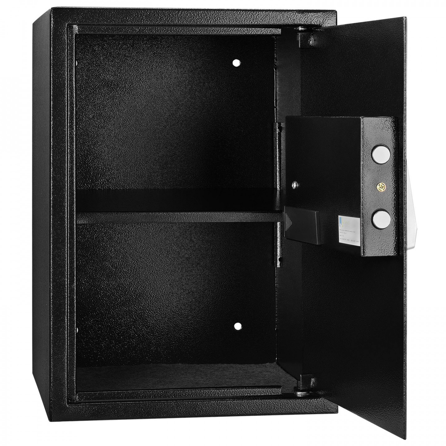 Datorită găurilor pre-găurite, seiful poate fi montat în siguranță pe pereți și podele.În acest scop sunt incluse și șuruburile de fixare.