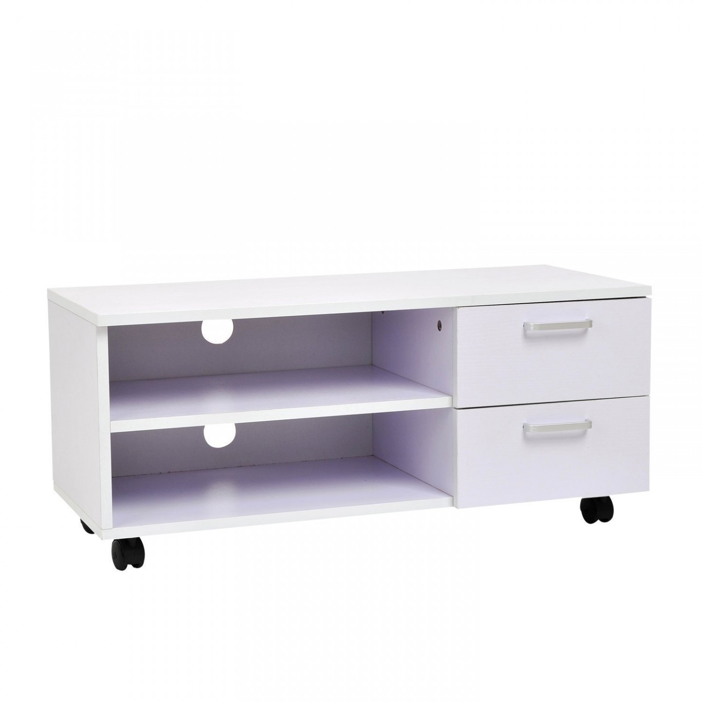 Comoda TV se caracterizează printr-un design simplu și stabil. Oferă mult spațiu pentru televizor și echipament tehnic. Datorita rotilor cu care ste echipata comoda, poate fi transportata dintr-un loc in altul.
