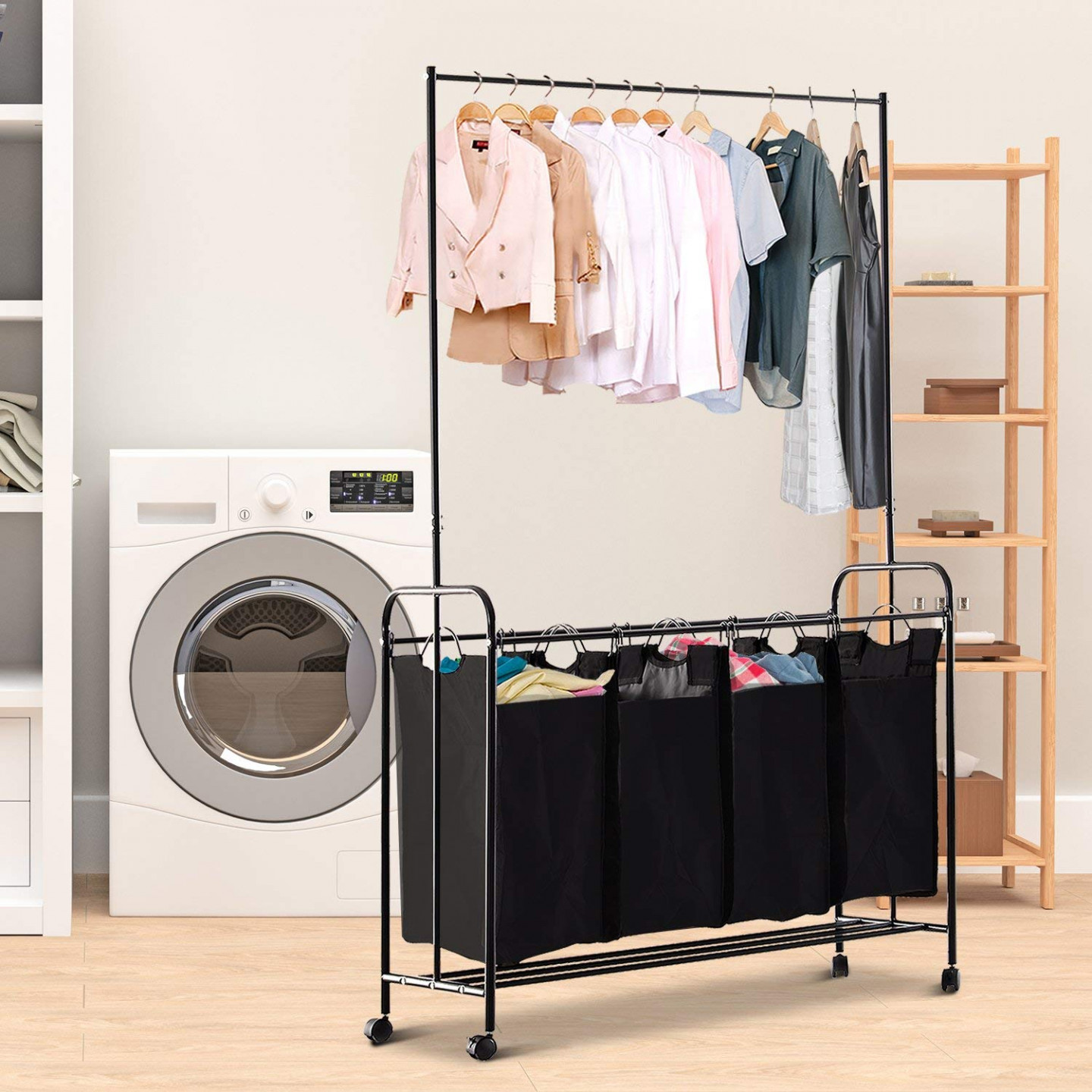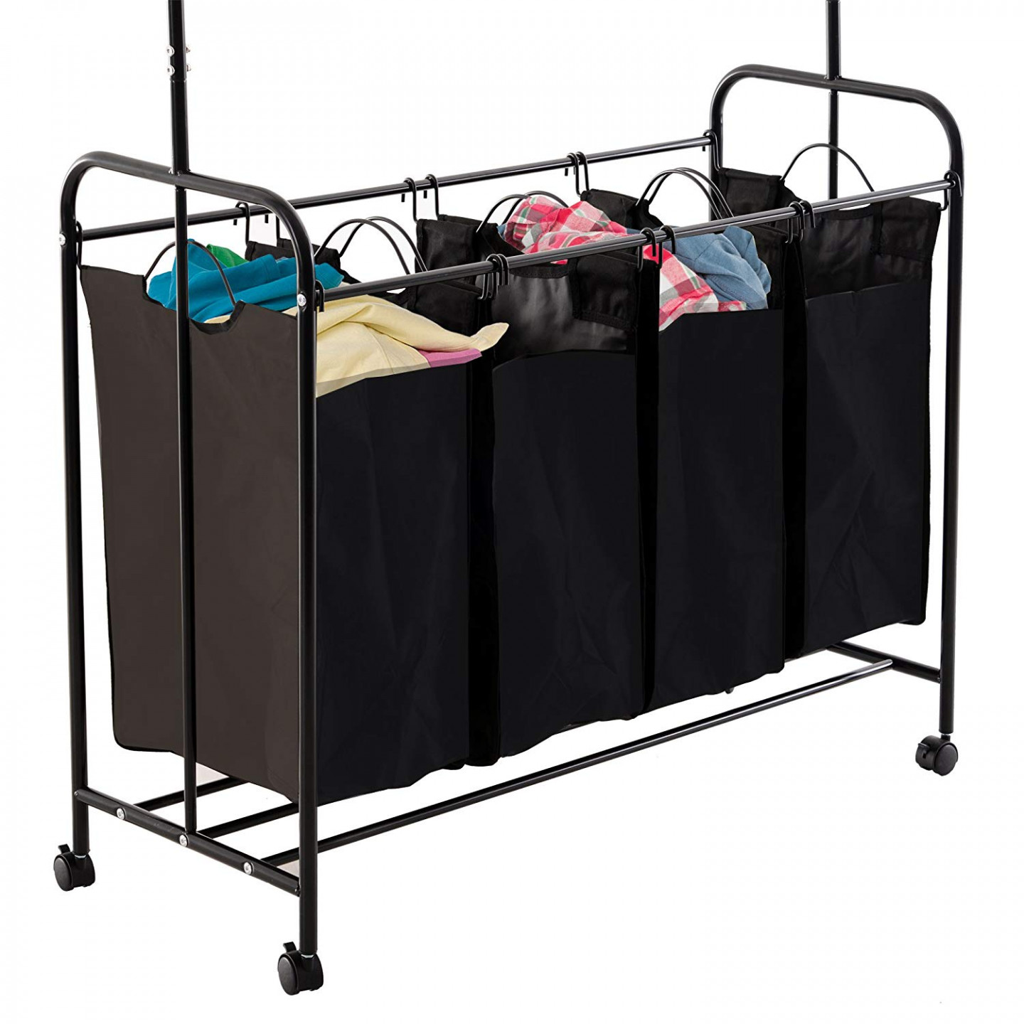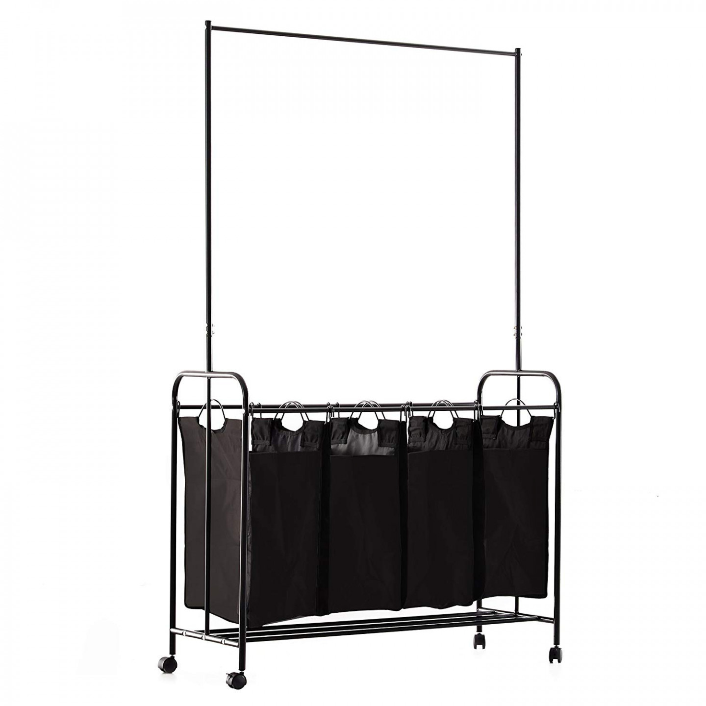 Suport pentru haine cu 4 coșuri de depozitare | negru